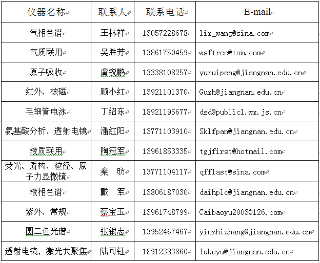 暑假即将来临,为了更好地为我校教学、科研服务,方便教职员工以及学生的样品分析测试需求,国家重点实验室测试平台在暑假期间实行对外开放,周一到周五有专人值班负责接样,具体值班人员联系方式见表一。如有特殊技术要求的老师和同学,请提前与相关仪器的负责老师联系,联系方式见表二。如果遇到其他问题,可与国家重点实验室测试平台相关负责老师朱松老师(13912289736)或者陈洁老师(13961761357)联系。