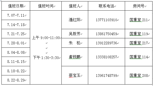 表一 测试平台2014年暑期值班表